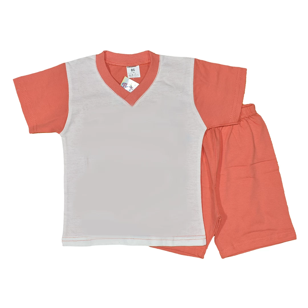 Да се потапяме в лятната радост с тази прекрасна бебешка пижама! Нашата оранжево-бяла комбинация ще донесе усмивки и удобство на вашето момиче през топлите дни.