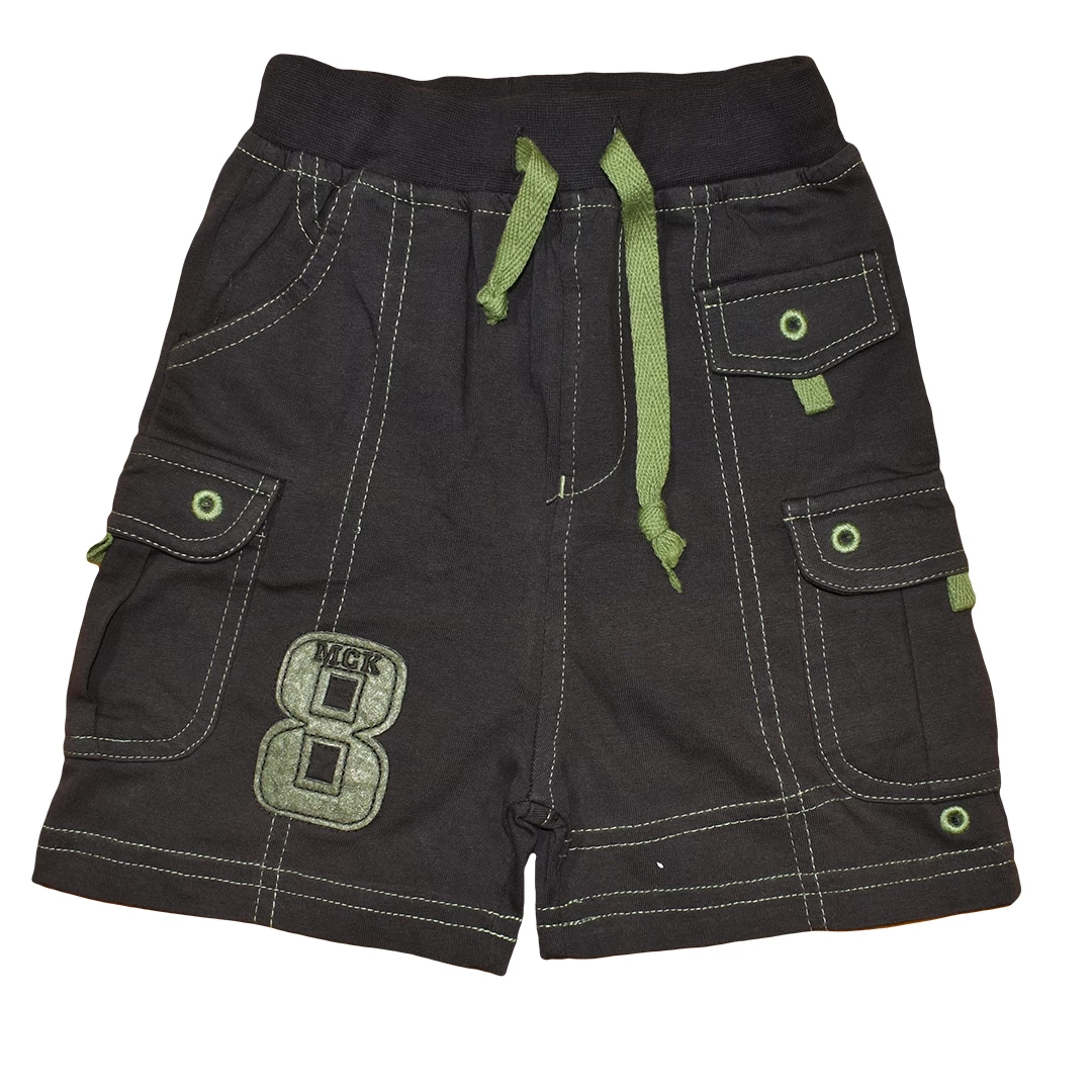 - Памучни бебешки панталонки къси за момче с джобчета и ластик, както и зелени връзки