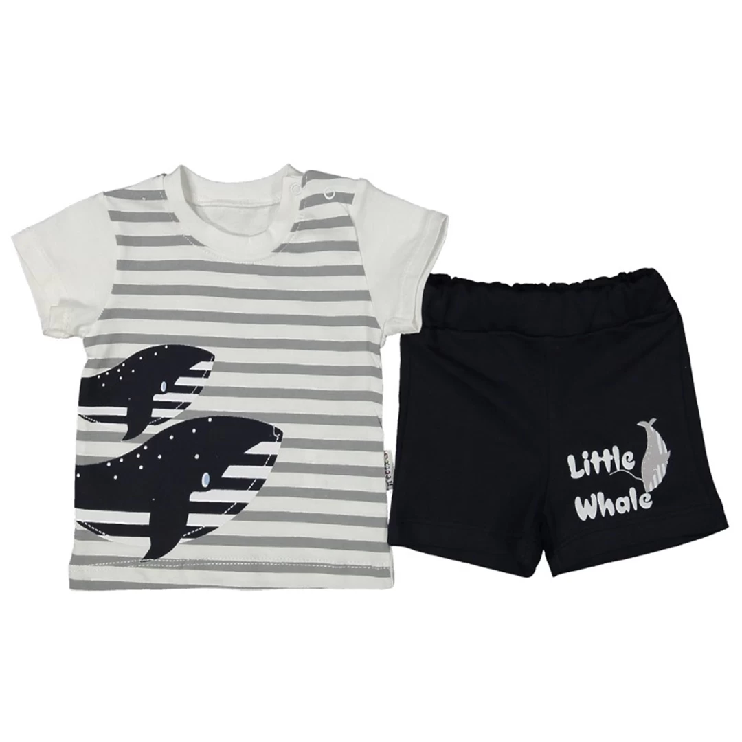Комплекта включва къси панталонки, тениска изработени от фин и мек памук.