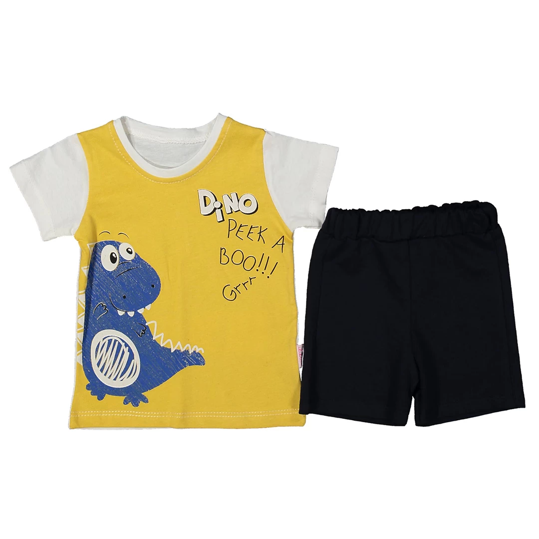 Комплекта включва къси панталонки, тениска изработени от фин и мек памук.