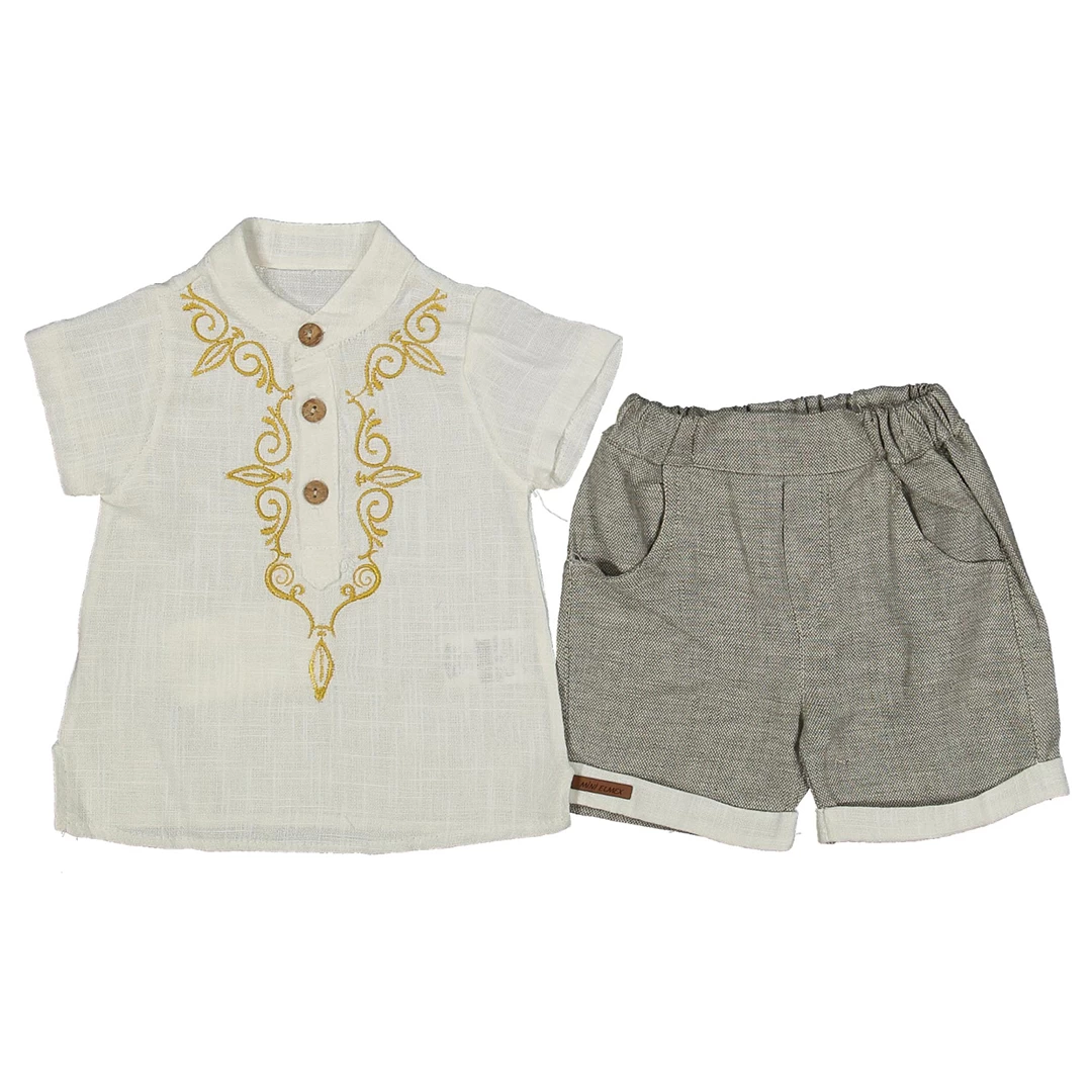 Комплекта включва къси панталонки, тениска изработени от фин и мек памук.
