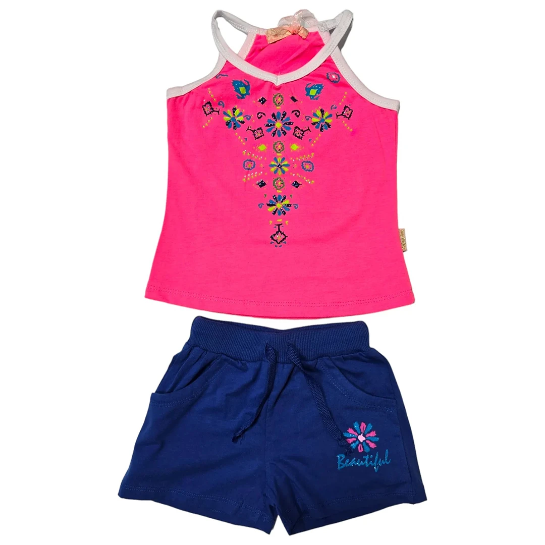 Този прекрасен комплект за момиче е идеален за летните дни. Изработен е от 100% памук, който осигурява комфорт и удобство. Комплектът е произведен в Китай и е подходящ за ежедневно носене или за по-специални поводи. С него вашият малчуган ще изглежда стилно и сладко.| Характеристики | |