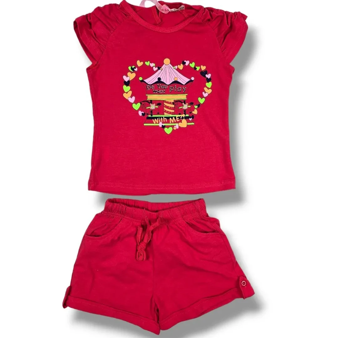 Този прекрасен комплект за момиче е идеален за летните дни. Изработен е от 100% памук, който осигурява комфорт и удобство. Комплектът е произведен в Китай и е подходящ за ежедневно носене или за по-специални поводи. С него вашият малчуган ще изглежда стилно и сладко.| Характеристики | |