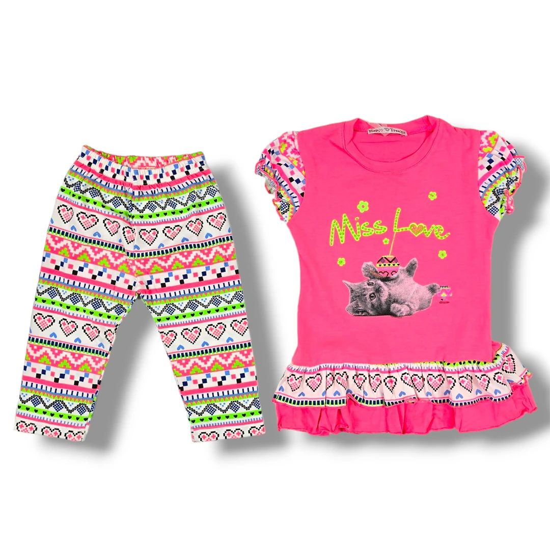 Този прекрасен комплект за момиче е идеален за летните дни. Изработен е от 100% памук, който осигурява комфорт и удобство. Комплектът е произведен в Китай и е подходящ за ежедневно носене или за по-специални поводи. С него вашият малчуган ще изглежда стилно и сладко.| Характеристики | |