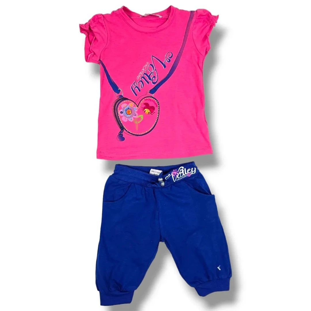 Този прекрасен комплект за момиче е идеален за летните дни. Изработен е от 100% памук, който осигурява комфорт и удобство. Комплектът е произведен в Китай и е подходящ за ежедневно носене или за по-специални поводи. С него вашият малчуган ще изглежда стилно и сладко.| Характеристики | |