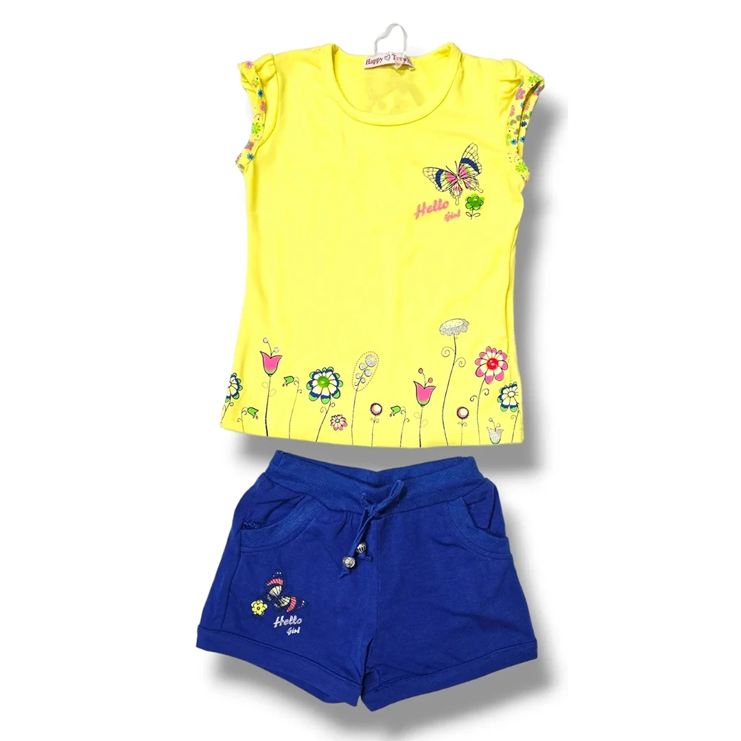 Този прекрасен комплект за момиче е идеален за летните дни. Изработен е от 100% памук, който осигурява комфорт и удобство. Комплектът е произведен в Китай и е подходящ за ежедневно носене или за по-специални поводи. С него вашият малчуган ще изглежда стилно и сладко.| Характеристики | |