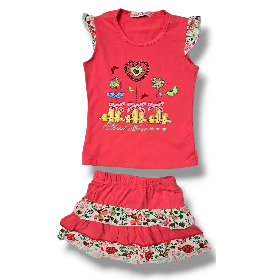 Този прекрасен комплект за момиче е идеален за летните дни. Изработен е от 100% памук, който осигурява комфорт и удобство. Комплектът е произведен в Китай и е подходящ за ежедневно носене или за по-специални поводи. С него вашият малчуган ще изглежда стилно и сладко.| Характеристики | |