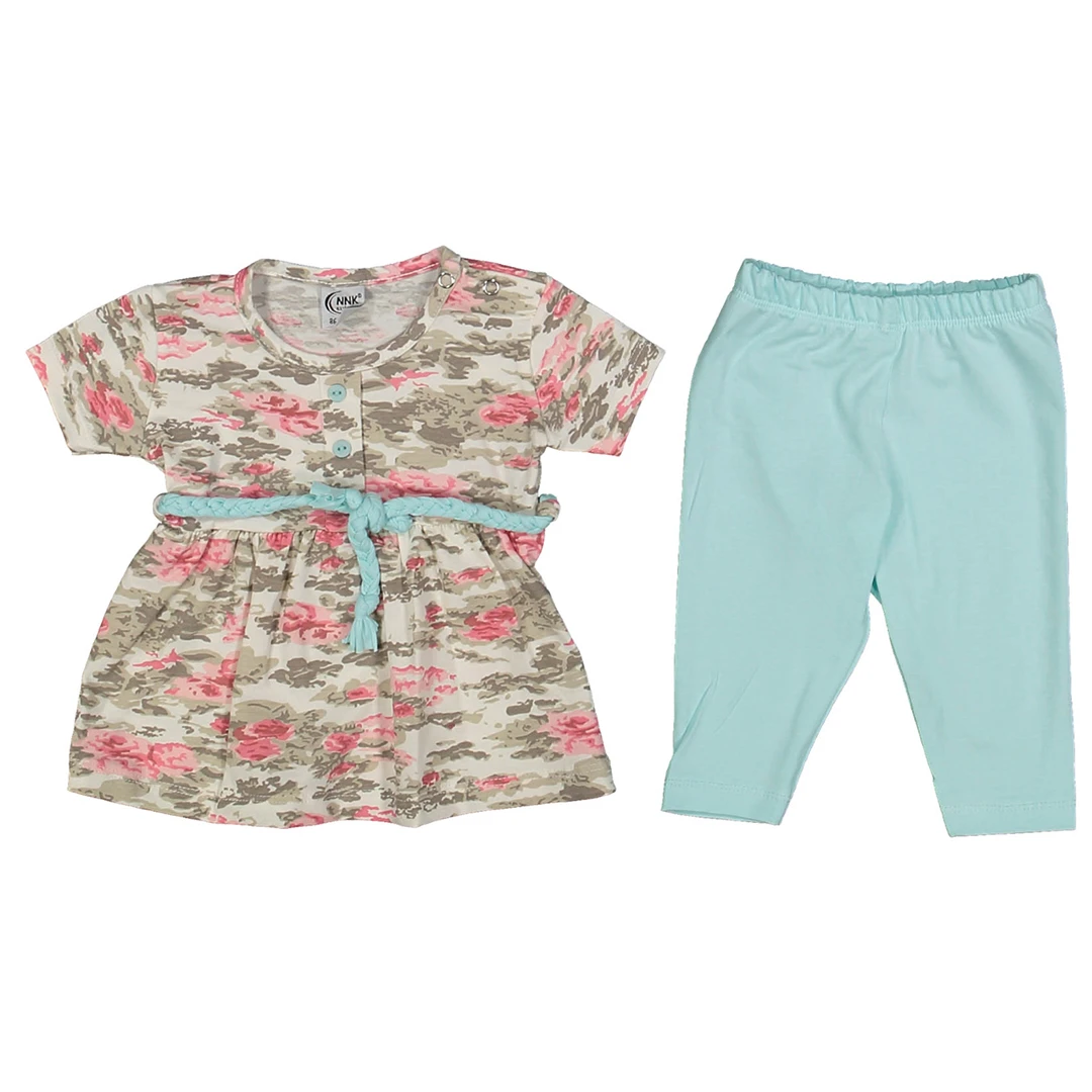 Този летен комплект за момиче включва туника на розички с връзка в ментов цвят и клинче в менотово изчистен. Изработен е от 100% памук и е произведен в Турция. Този комплект е идеален избор за комфортно и стилно обличане на малката принцеса през топлите летни дни.| Характеристики | |