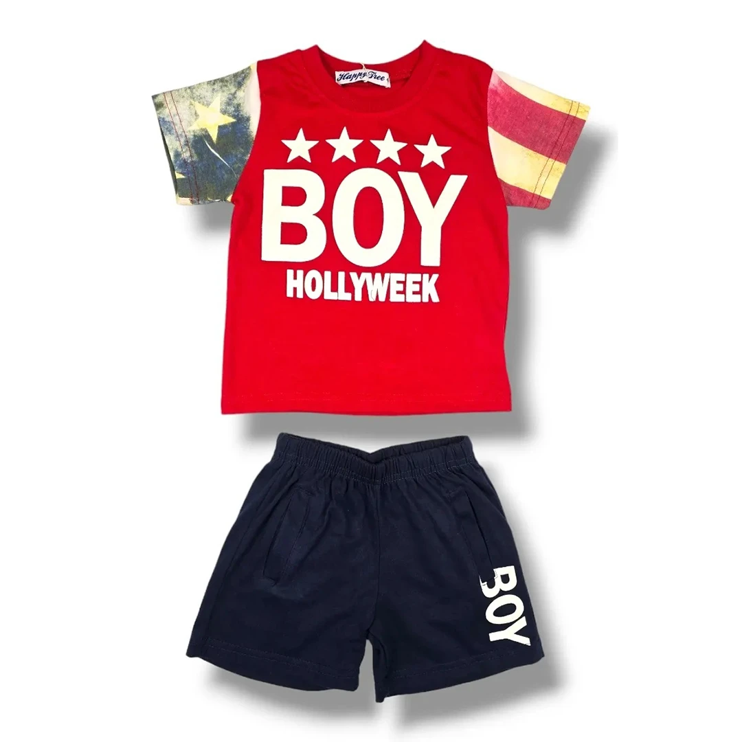 Детският летен комплект за момче е идеален за горещите летни дни. Изработен е от 100% памук, който гарантира комфорт и удобство. Комплектът е произведен в Китай. Предлага се в различни размери.| Характеристики | |