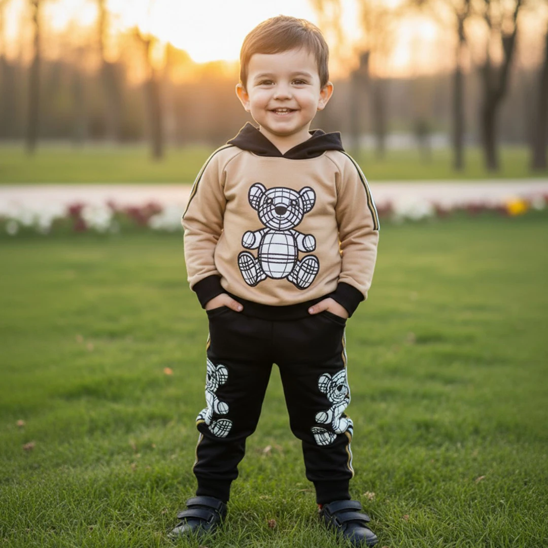 Черно и Бежово Детско Дуо: Стилен Екип с Мече Принт