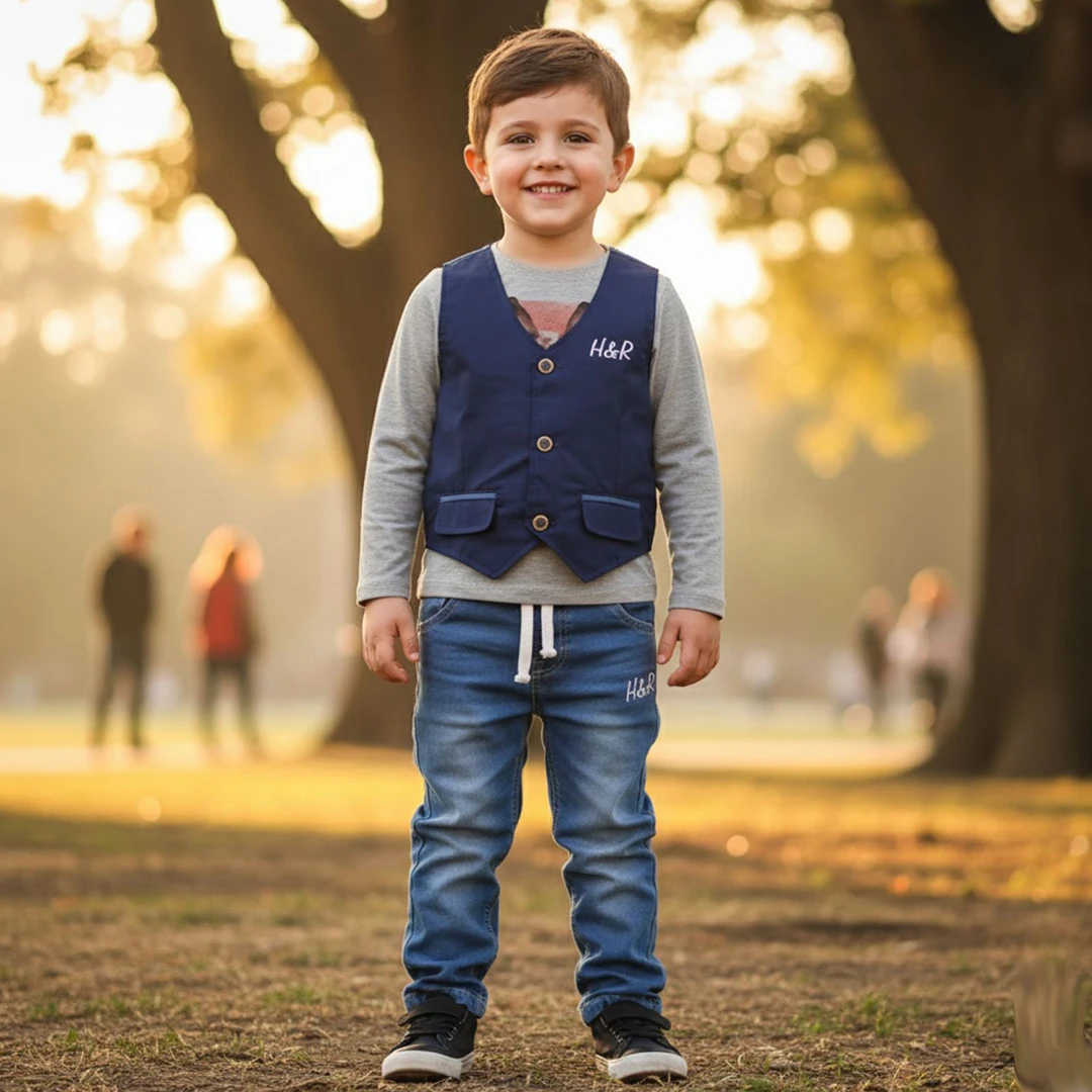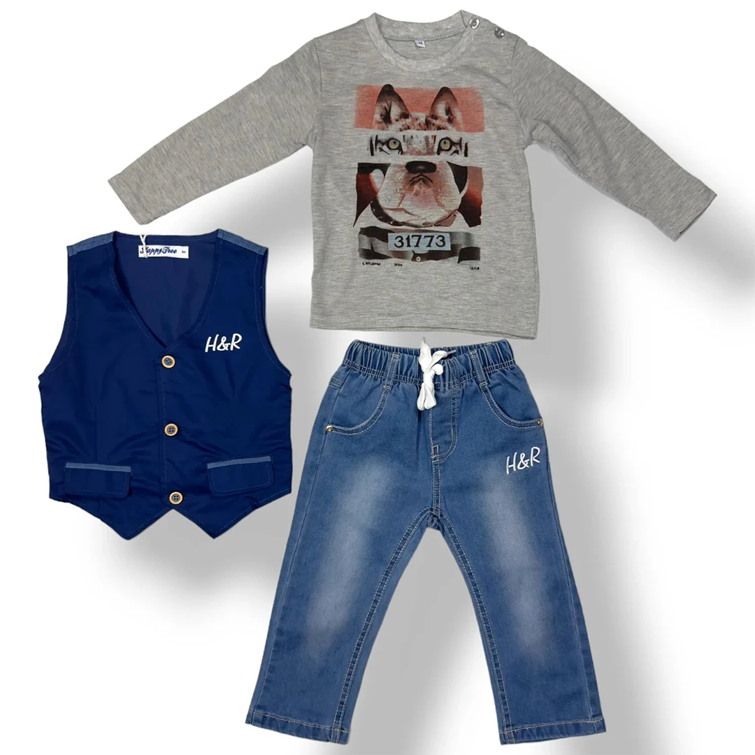 Този детски комплект включва дънки, блузка и елече, изработени от 100% памук за комфортно и удобно обличане на Вашето дете. Идеален за всекидневно носене или специални поводи. Произведен в Китай.| General | |