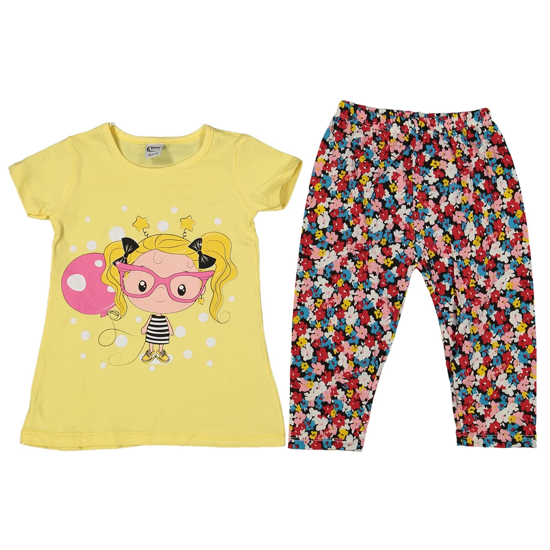 Представяме ви нашия чудесен летен комплект за момиче, който ще добави слънчева радост към летните дни на вашата малка принцеса. Жълтата тениска е весела и наситена, със свежа апликация на сладко момиченце, което държи в ръка ярък балон, изпълнен с мечти.