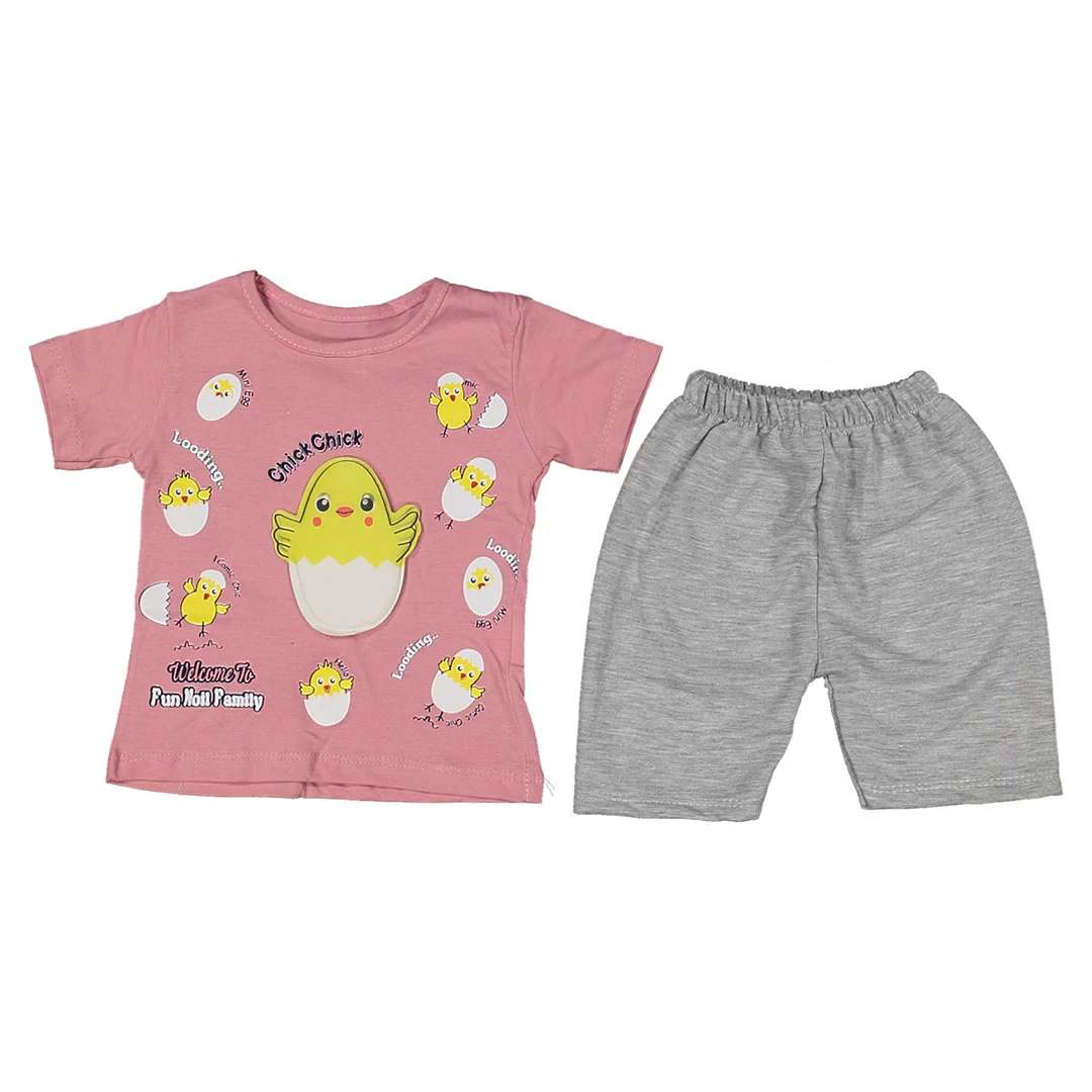 Сладки новоизлюпени пиленца - Бебешки летен комплект с тениска и панталонки