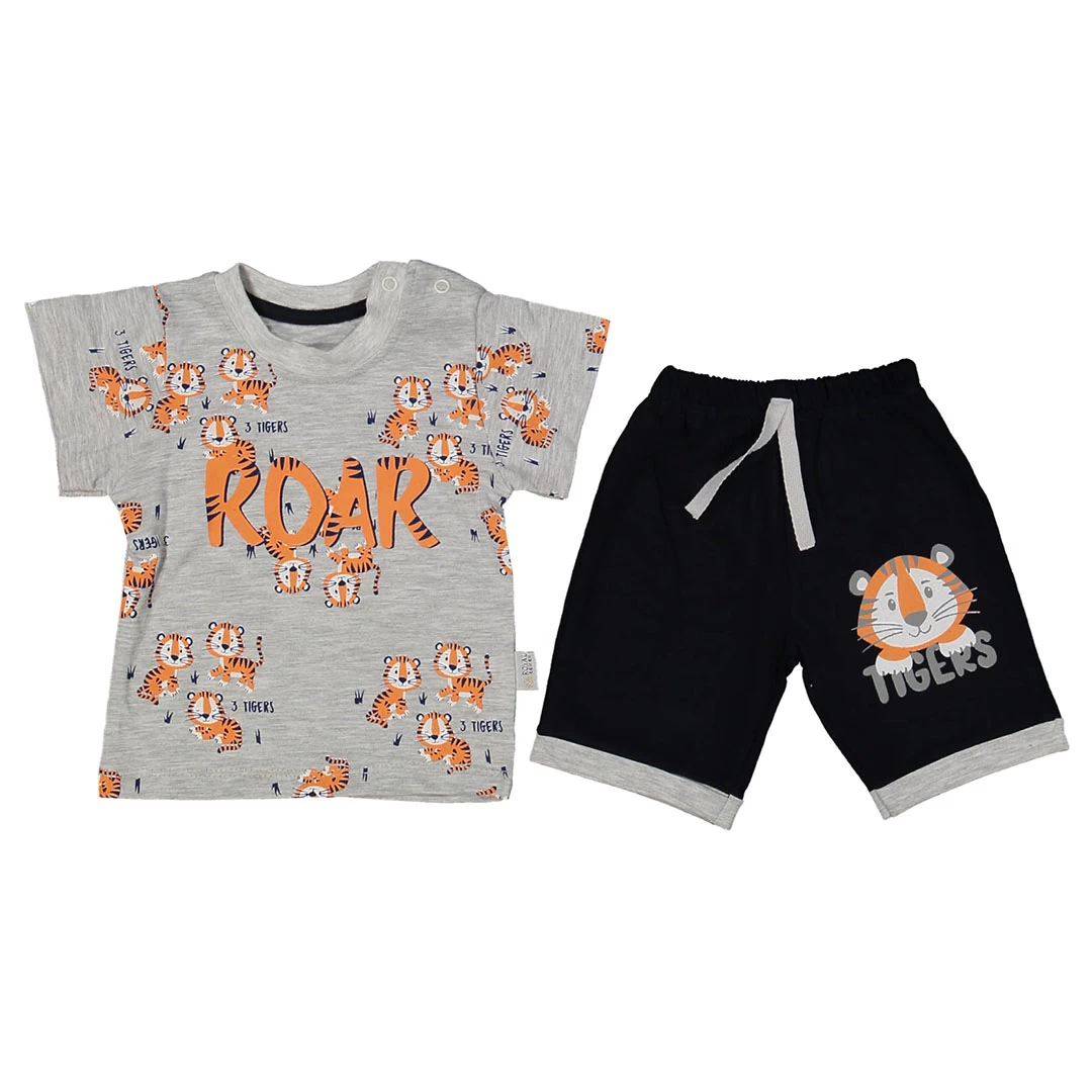 Стилен бебешки летен комплект за момче - магията на тигърчетата в сиво и черно