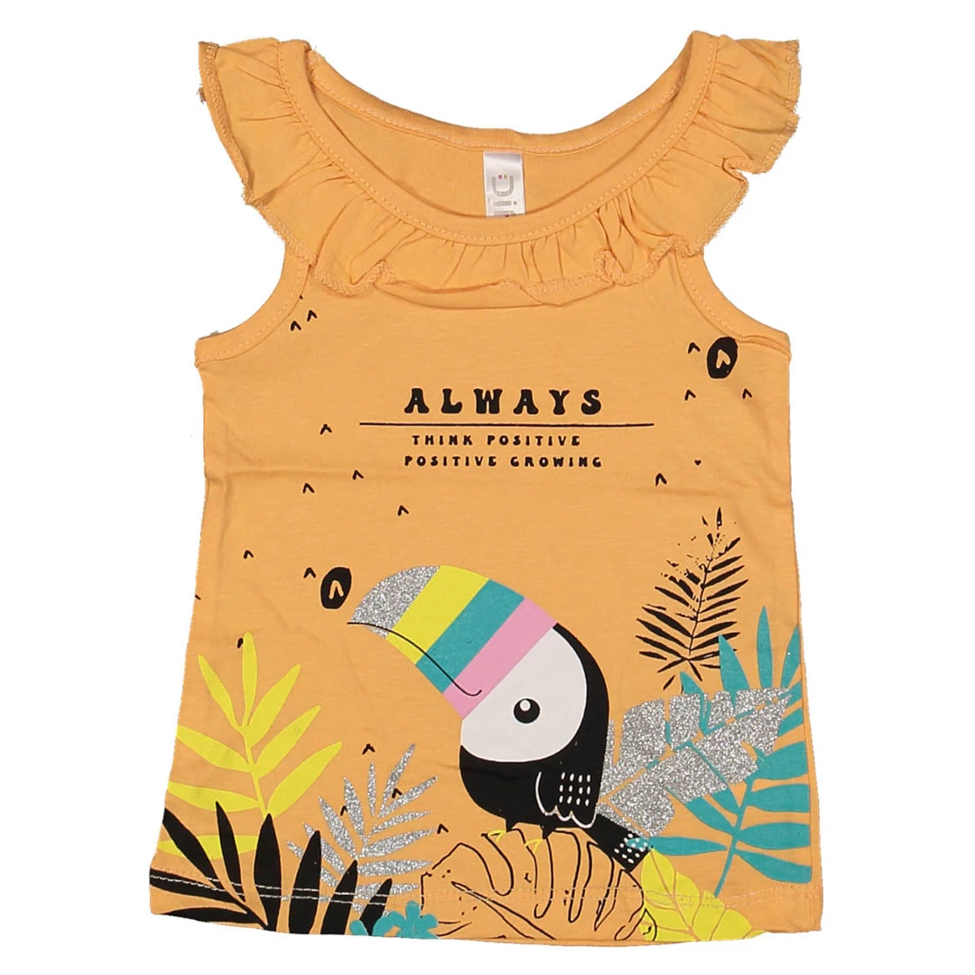 Добре дошли в нашия онлайн магазин за детски дрехи! Представяме ви нашия ярък и модерен детски потник в привлекателното оранжево, който ще добави цветна енергия и стил на вашето момиченце. Този потник се отличава с апликация на птица Тукан и игриви листа, които го правят незабравим и весел.