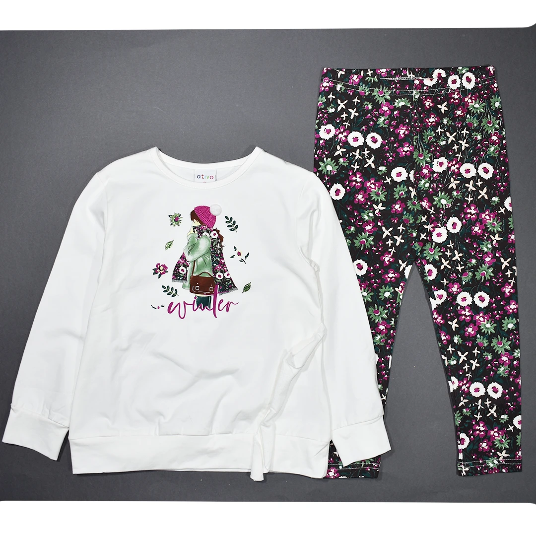 Блузата с дълги ръкави се откроява със сладък принт и надпис "winter", приканващ към зимни радости. Легинсите пък са обсипани с богат цветен модел, който придава жизненост и динамика на всяко детско приключение.