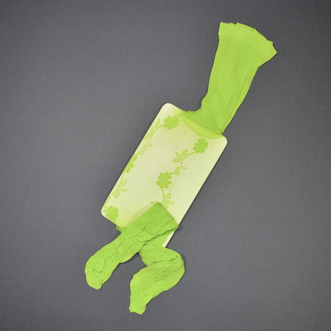 Описание: Веселие и цветове в стъпките! Осветете деня на вашата малка госпожица с този привлекателен светлозелен чорапогащник, украсен с игриви листни мотиви за допълнителен природен шарм.
