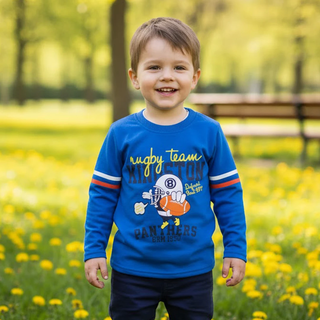 Детска блуза за момче изработена от 100% памук. Тази стилна блуза е удобна за носене и подходяща за ежедневието. Произведена в Китай с внимание към качеството и детайлите. Перфектно допълнение към гардероба на всяко момче.| Характеристики | |