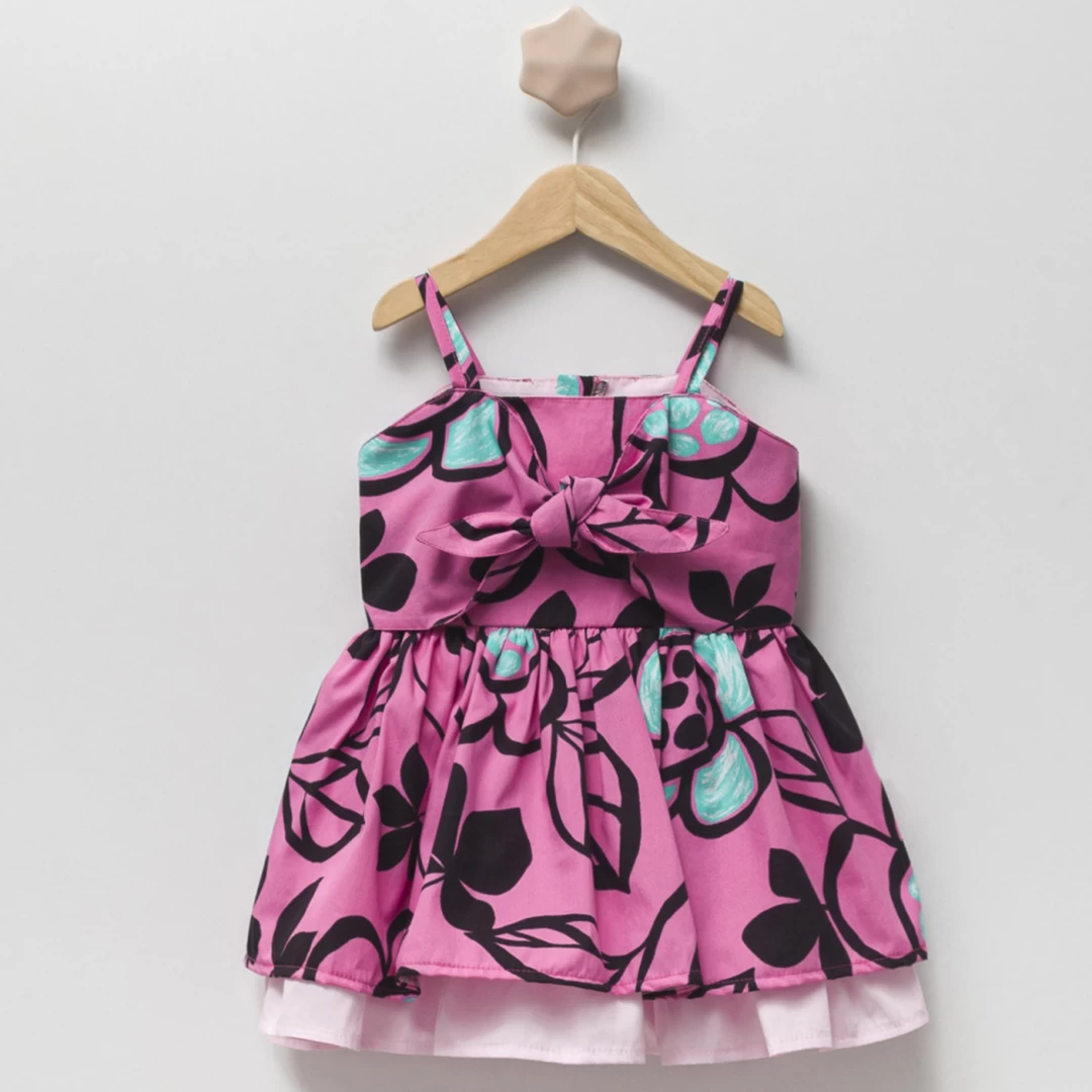 - Памучна детска рокля за момиче изработена от фин и мек и интересен десен в циклама на цветя.