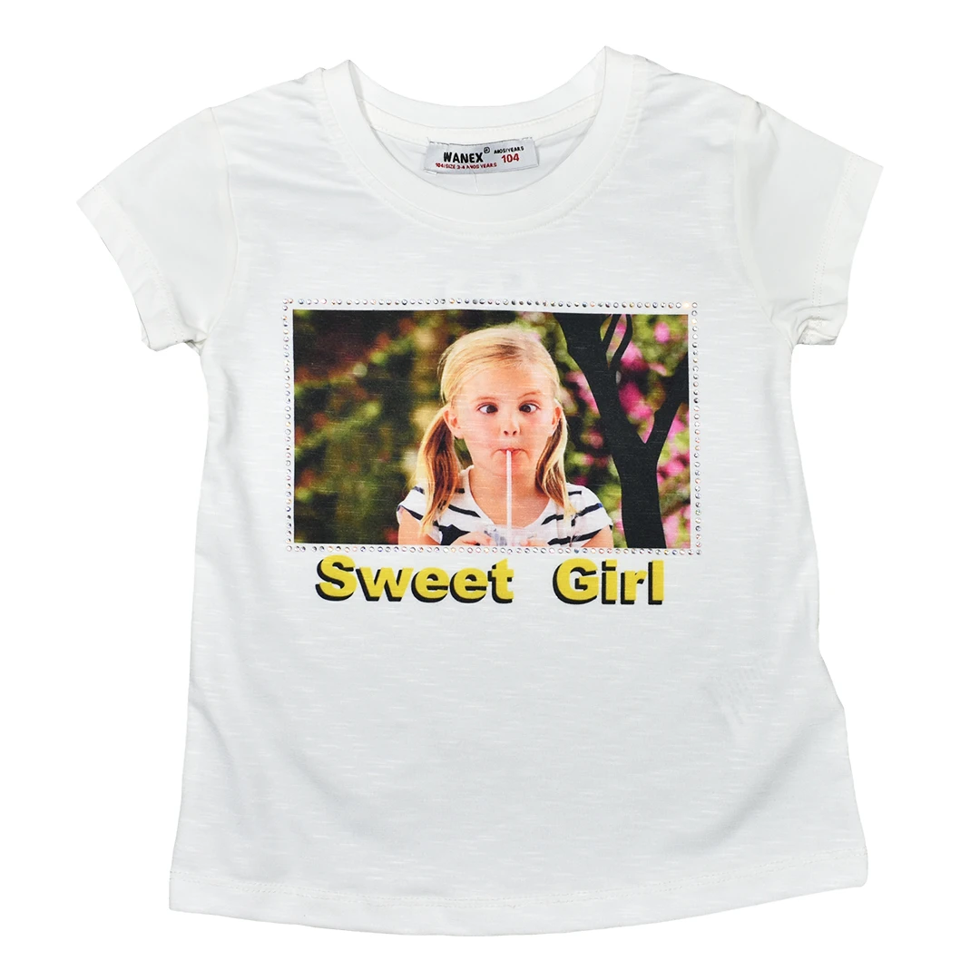 Детска тениска за момиче в бяло с картинка на момимче. Изработена от 100% памук, което я прави удобна за носене през горещите летни дни. Тениската е произведена в Турция с високо качество на изработка.| Характеристики | |