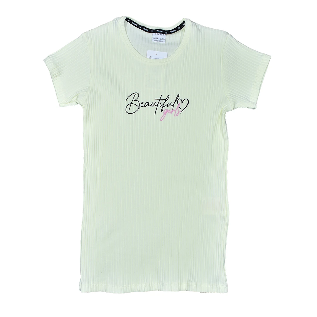 Детска туника за момиче в бледо жълт цвят с надпис. Изработена от 100% памук за комфортно носене. Тази туника ще бъде отлично допълнение към гардероба на всяко момиче. Произведена в Турция.| Характеристики | |