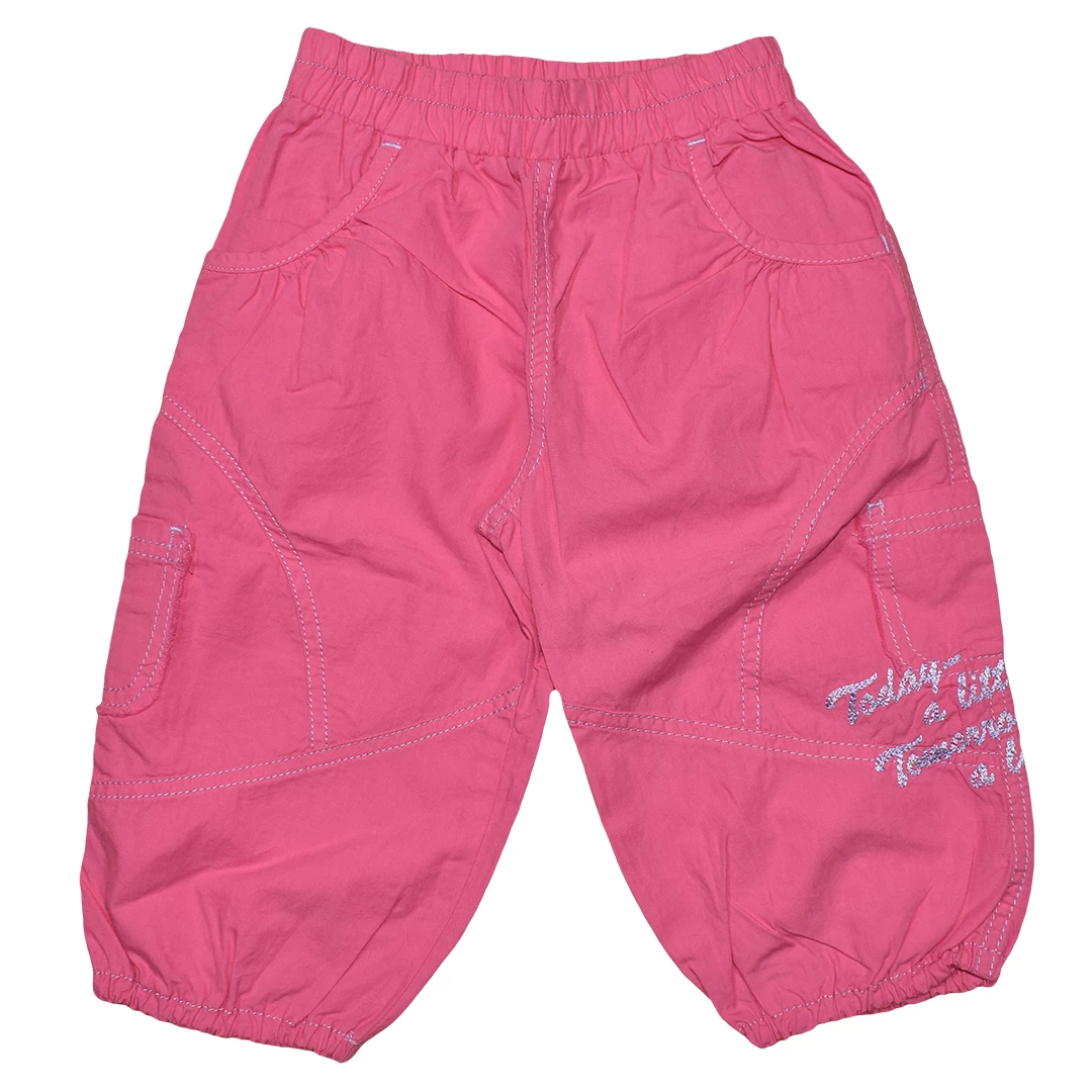 - Детски къси панталонки за момиче в цвят диня под коляното. Изработени от финна памучна материя.