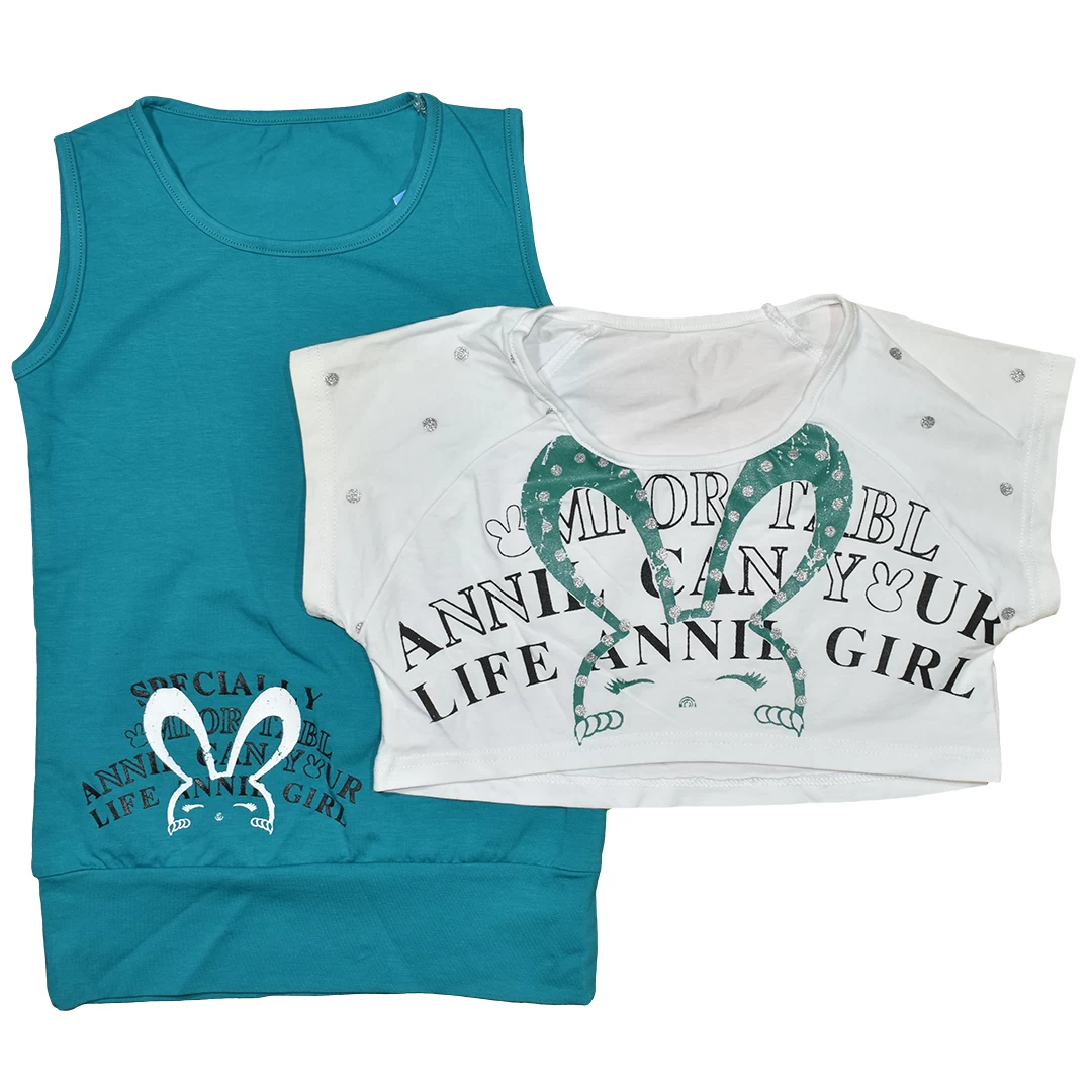 Детски летен комплект от туника и бюстие за момиче с мотиви на зайчета