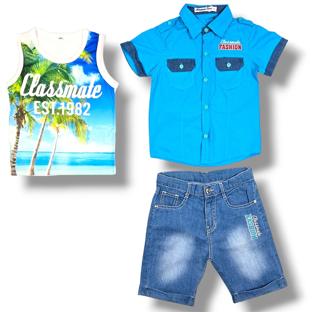 Детският летен комплект за момче е идеален за горещите летни дни. Изработен е от 100% памук, който гарантира комфорт и удобство. Комплектът е произведен в Китай. Предлага се в различни размери.| Характеристики | |