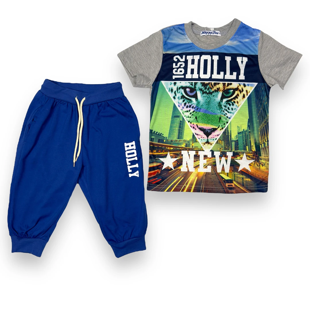 Детският летен комплект за момче е идеален за горещите летни дни. Изработен е от 100% памук, който гарантира комфорт и удобство. Комплектът е произведен в Китай. Предлага се в различни размери.| Характеристики | |