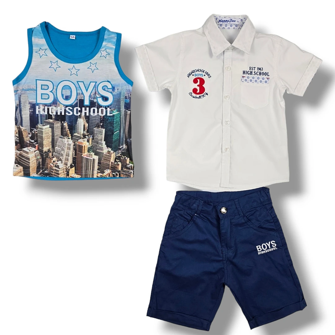 Детският летен комплект за момче е идеален за горещите летни дни. Изработен е от 100% памук, който гарантира комфорт и удобство. Комплектът е произведен в Китай. Предлага се в различни размери.| Характеристики | |