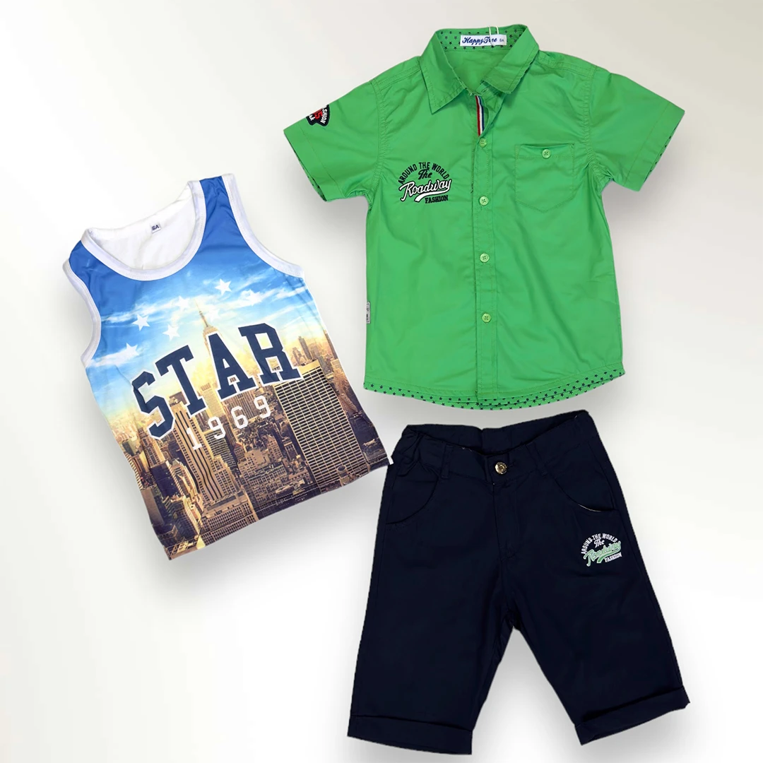 Детският летен комплект за момче е идеален за горещите летни дни. Изработен е от 100% памук, който гарантира комфорт и удобство. Комплектът е произведен в Китай. Предлага се в различни размери.| Характеристики | |