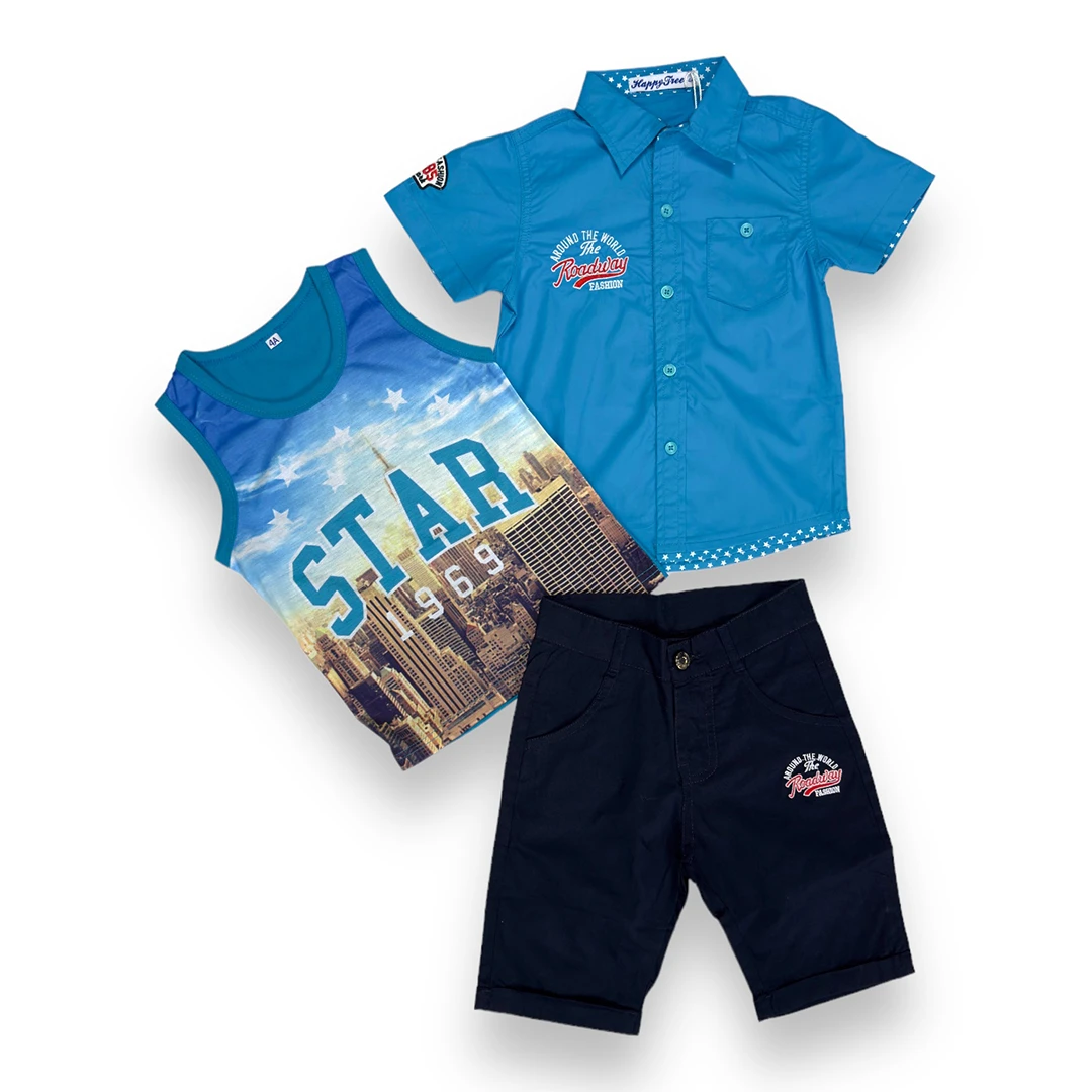 Детският летен комплект за момче е идеален за горещите летни дни. Изработен е от 100% памук, който гарантира комфорт и удобство. Комплектът е произведен в Китай. Предлага се в различни размери.| Характеристики | |