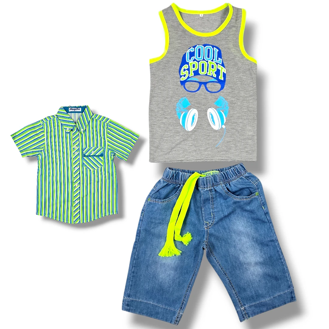 Детският летен комплект за момче е идеален за горещите летни дни. Изработен е от 100% памук, който гарантира комфорт и удобство. Комплектът е произведен в Китай. Предлага се в различни размери.| Характеристики | |