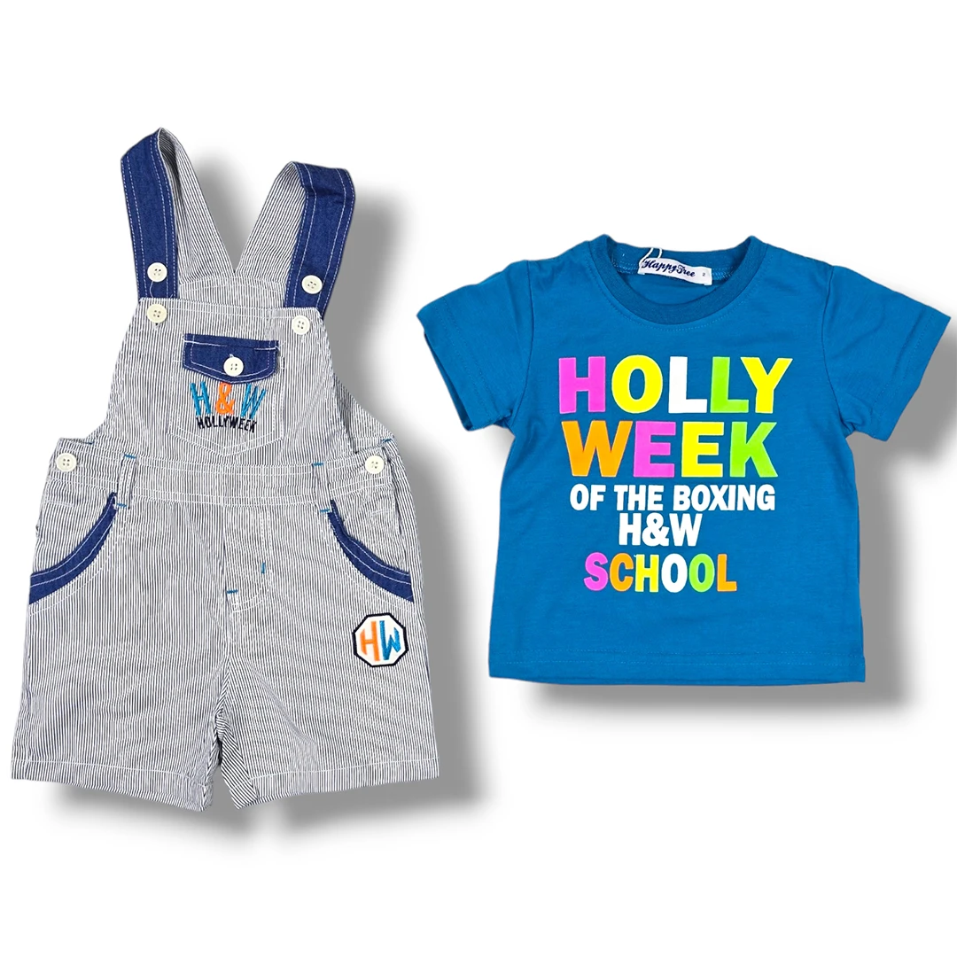 Детският летен комплект за момче е идеален за горещите летни дни. Изработен е от 100% памук, който гарантира комфорт и удобство. Комплектът е произведен в Китай. Предлага се в различни размери.| Характеристики | |