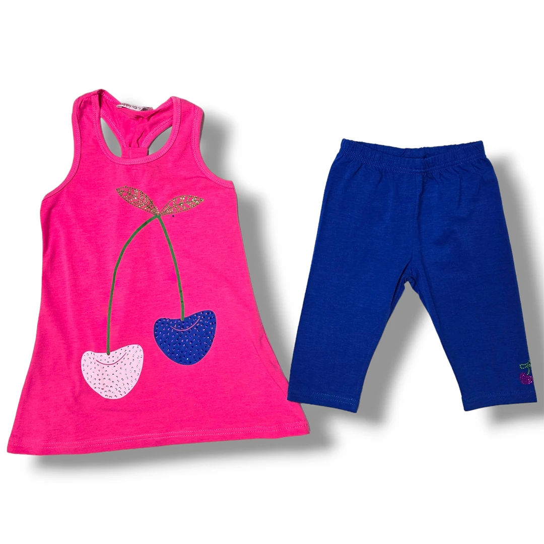 Този детски летен комплект за момиче е изключително удобен и подходящ за горещите летни дни. Изработен е от 100% памук, който предоставя комфорт и свежест на детската кожа. Комплектът е произведен в Китай с внимание към детайлите и качеството.| Характеристики | |