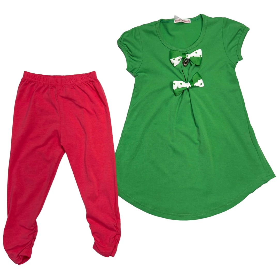Този детски летен комплект за момиче е изключително удобен и подходящ за горещите летни дни. Изработен е от 100% памук, който предоставя комфорт и свежест на детската кожа. Комплектът е произведен в Китай с внимание към детайлите и качеството.| Характеристики | |