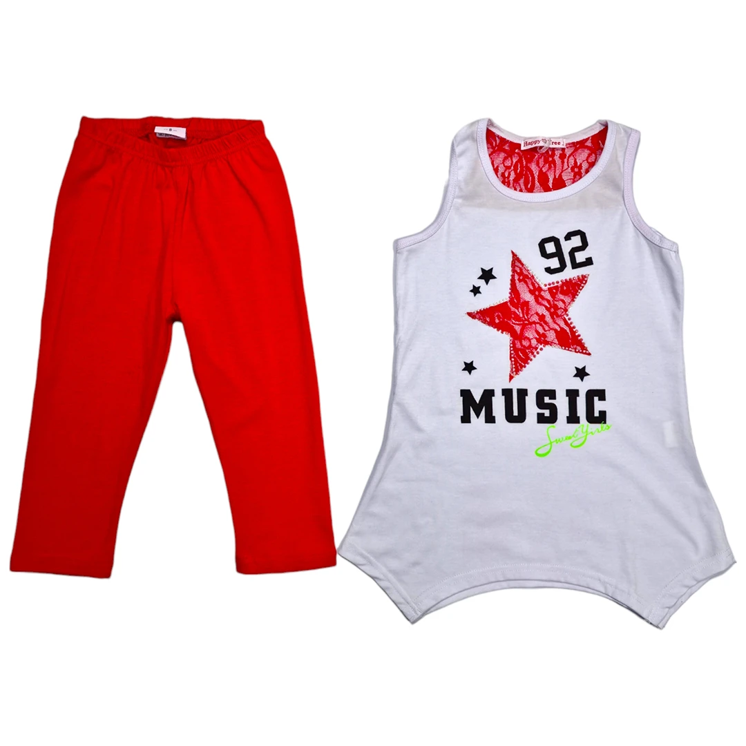 Този детски летен комплект за момиче е изключително удобен и подходящ за горещите летни дни. Изработен е от 100% памук, който предоставя комфорт и свежест на детската кожа. Комплектът е произведен в Китай с внимание към детайлите и качеството.| Характеристики | |