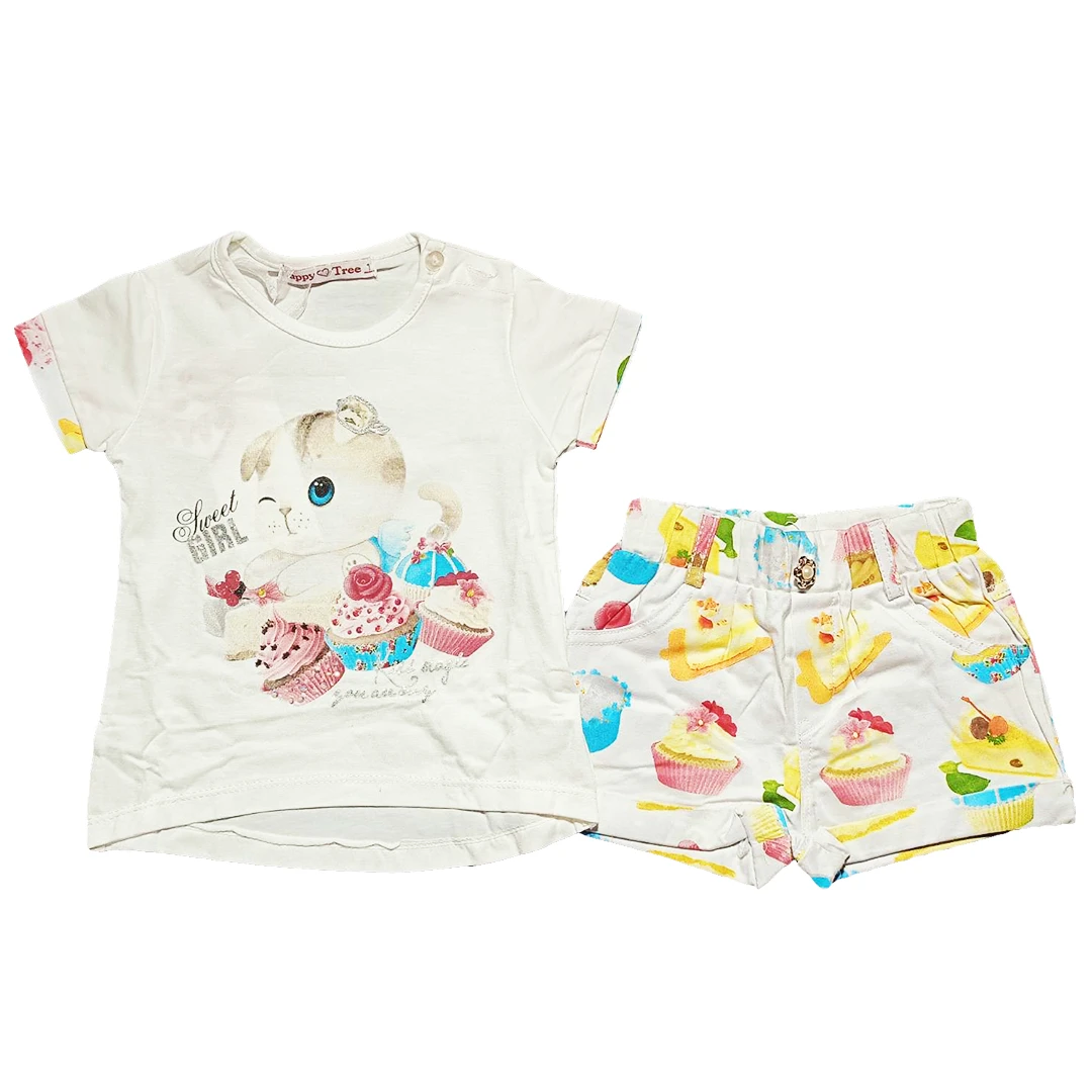 Този детски летен комплект за момиче е изключително удобен и подходящ за горещите летни дни. Изработен е от 100% памук, който предоставя комфорт и свежест на детската кожа. Комплектът е произведен в Китай с внимание към детайлите и качеството.| Характеристики | |