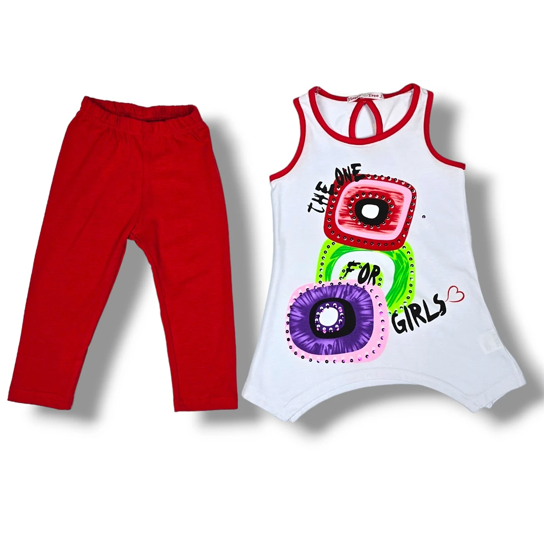 Този детски летен комплект за момиче е изключително удобен и подходящ за горещите летни дни. Изработен е от 100% памук, който предоставя комфорт и свежест на детската кожа. Комплектът е произведен в Китай с внимание към детайлите и качеството.| Характеристики | |