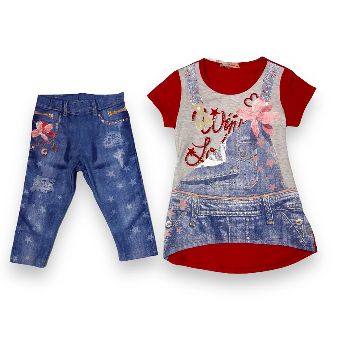 Този детски летен комплект за момиче е изключително удобен и подходящ за горещите летни дни. Изработен е от 100% памук, който предоставя комфорт и свежест на детската кожа. Комплектът е произведен в Китай с внимание към детайлите и качеството.| Характеристики | |