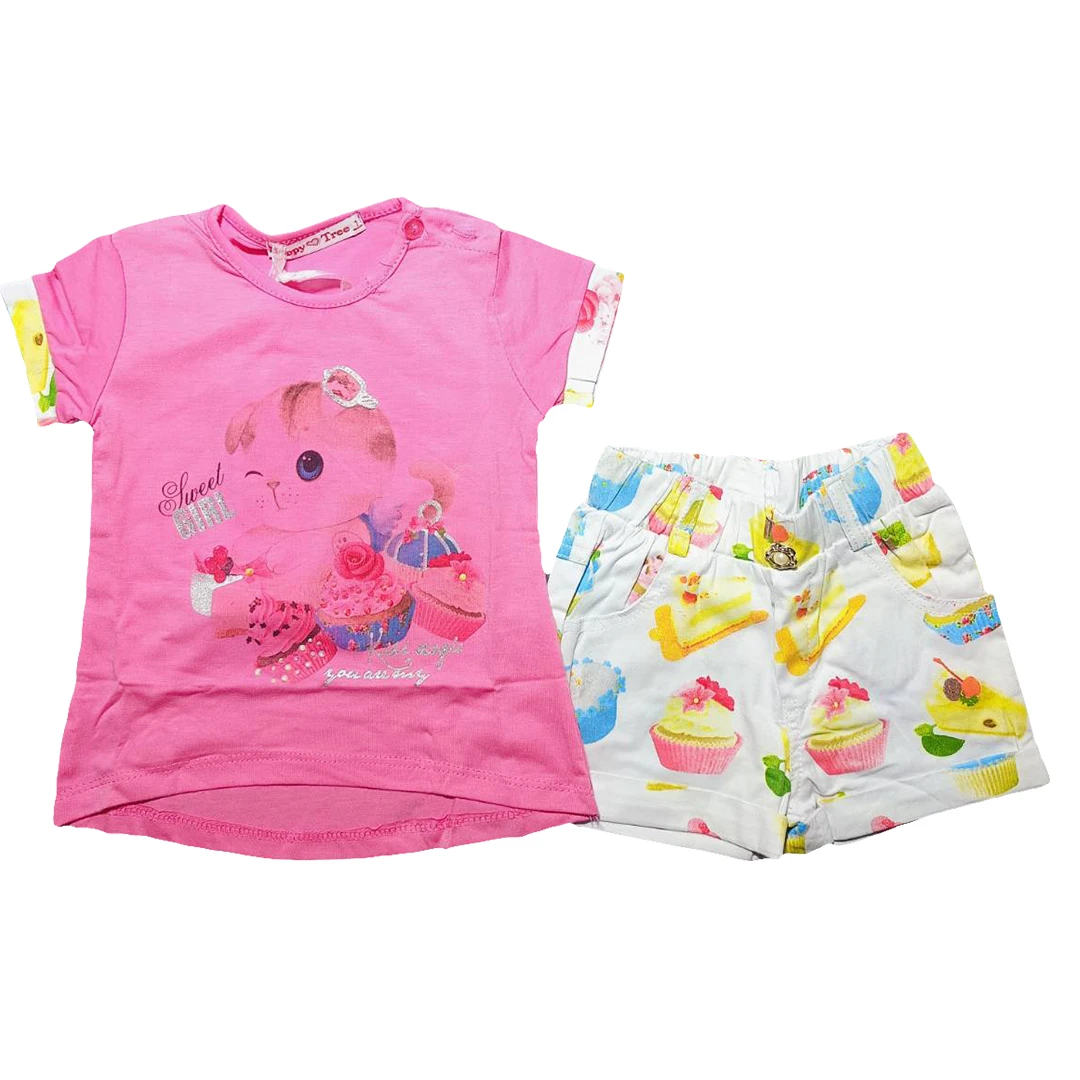 Този детски летен комплект за момиче е изключително удобен и подходящ за горещите летни дни. Изработен е от 100% памук, който предоставя комфорт и свежест на детската кожа. Комплектът е произведен в Китай с внимание към детайлите и качеството.| Характеристики | |