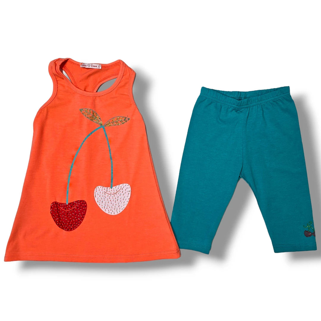 Този детски летен комплект за момиче е изключително удобен и подходящ за горещите летни дни. Изработен е от 100% памук, който предоставя комфорт и свежест на детската кожа. Комплектът е произведен в Китай с внимание към детайлите и качеството.| Характеристики | |