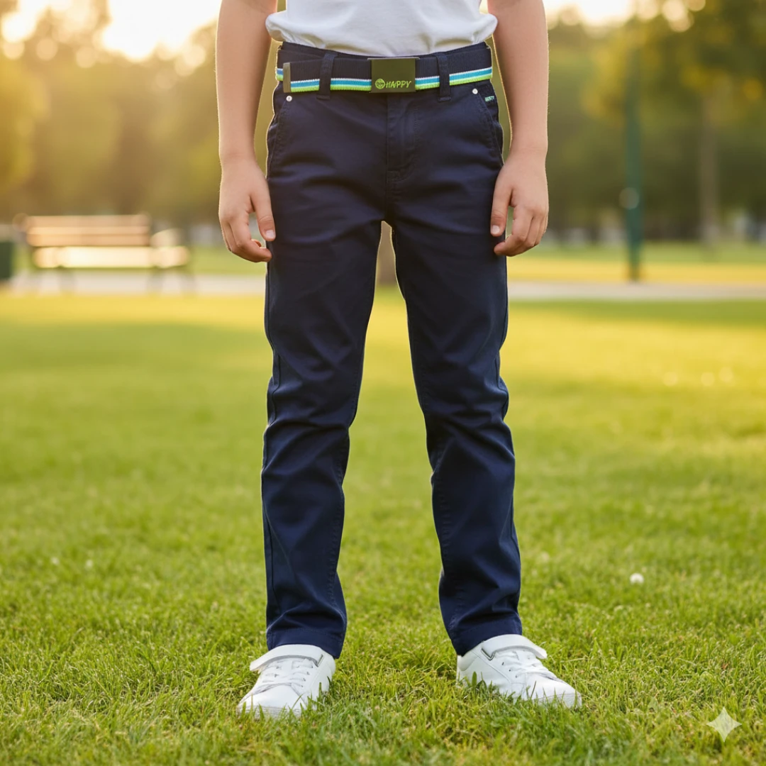 Детските панталон за момче са изработени от 100% памук и са идеални за активните момчета. Стилни и удобни, те са подходящи за всекидневието и игрите на децата. Детските дънки се отличават с изключително качество на изработка и могат да бъдат съчетани с различни детски тениски и ризи. Произведени в Китай.| Характеристики | |
