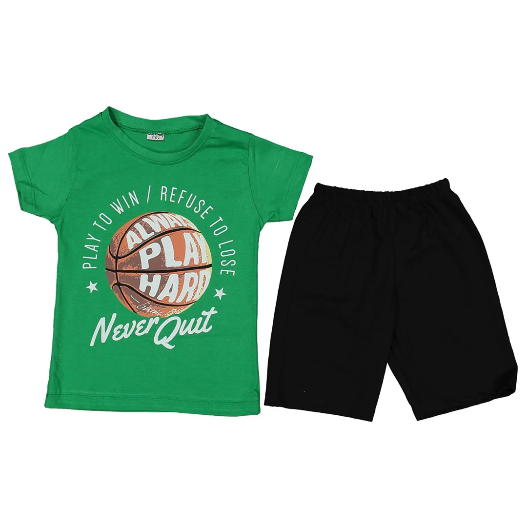 Добре дошли в нашия онлайн магазин за детски дрехи! Представяме ви нашия енергичен и стилен детски комплект за момче от 2 части в зелено и тъмно синьо. Този комплект е идеален избор за вашето активно и модерно момче. Включва тениска в зелено с апликация на баскетболна топка и надписи, както и къси панталонки в тъмно синьо изчистени.
