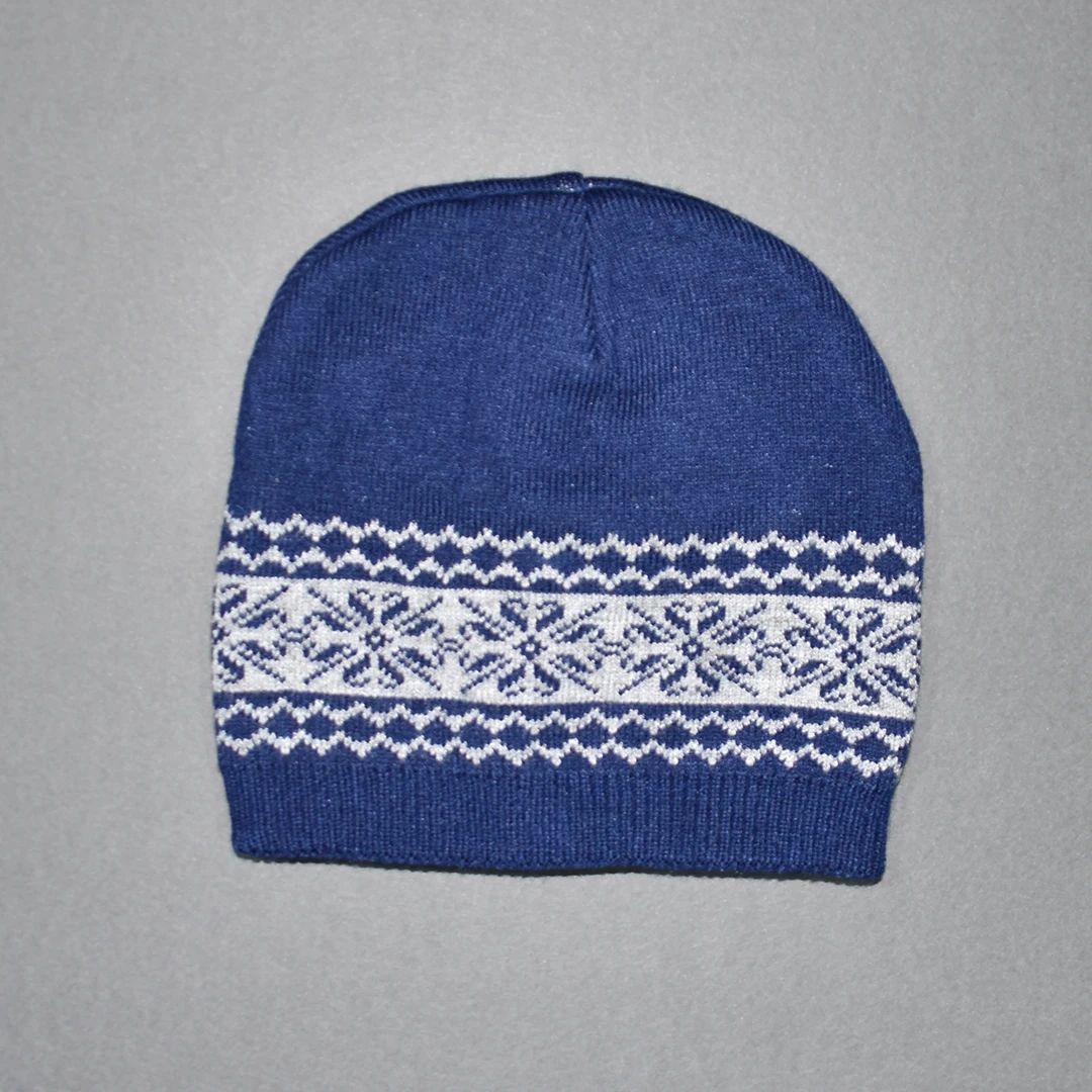 Класическа Синя Шапка за Момченце с Бял Снежен Мотив