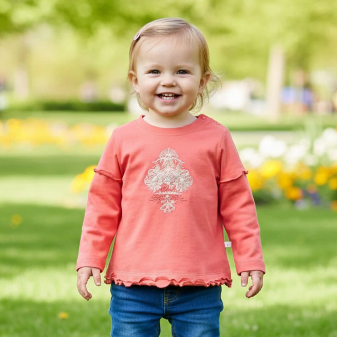 "Коралова Красота" - Бебешка Блуза за Момиче с Елегантен Орнамент