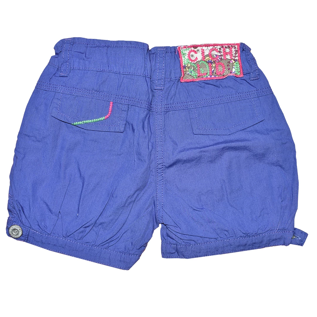 - Летнни къси панталонки за момиче, изработени от финна лилава памучна материя с нежна бродерия.