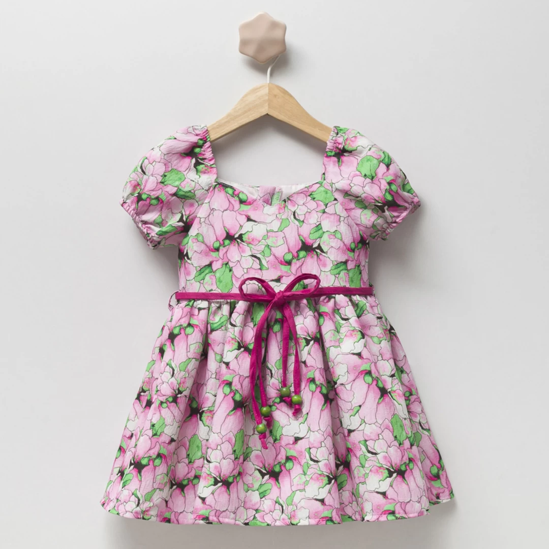 Лятна детска рокля за момиче с десен на красиви розови цветя