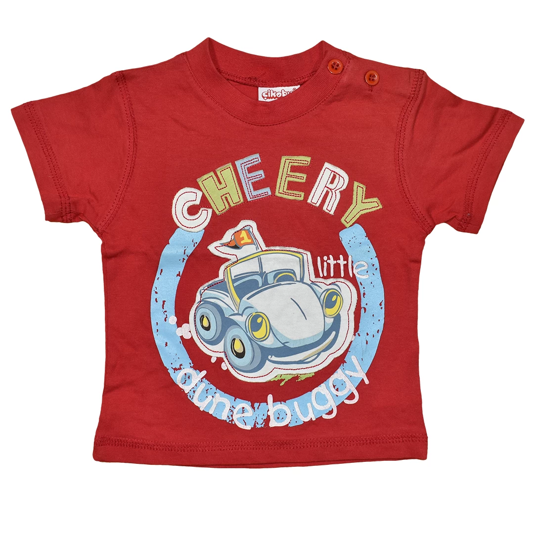 Тази тениска е перфектният избор за малкия господин. Изработена е от висококачествен памук и е много удобна за носене през лятото. Отпред има забавна картинка на количка, а надписът "Cheery" я прави още по-привлекателна. Тениската има копчета отгоре на лявата страна, които я правят по-лесна за обличане и събличане. Тя е произведена в България и гарантираме, че е изработена с внимание към всеки детайл. Направете вашето момченце щастливо с тази чудесна тениска!