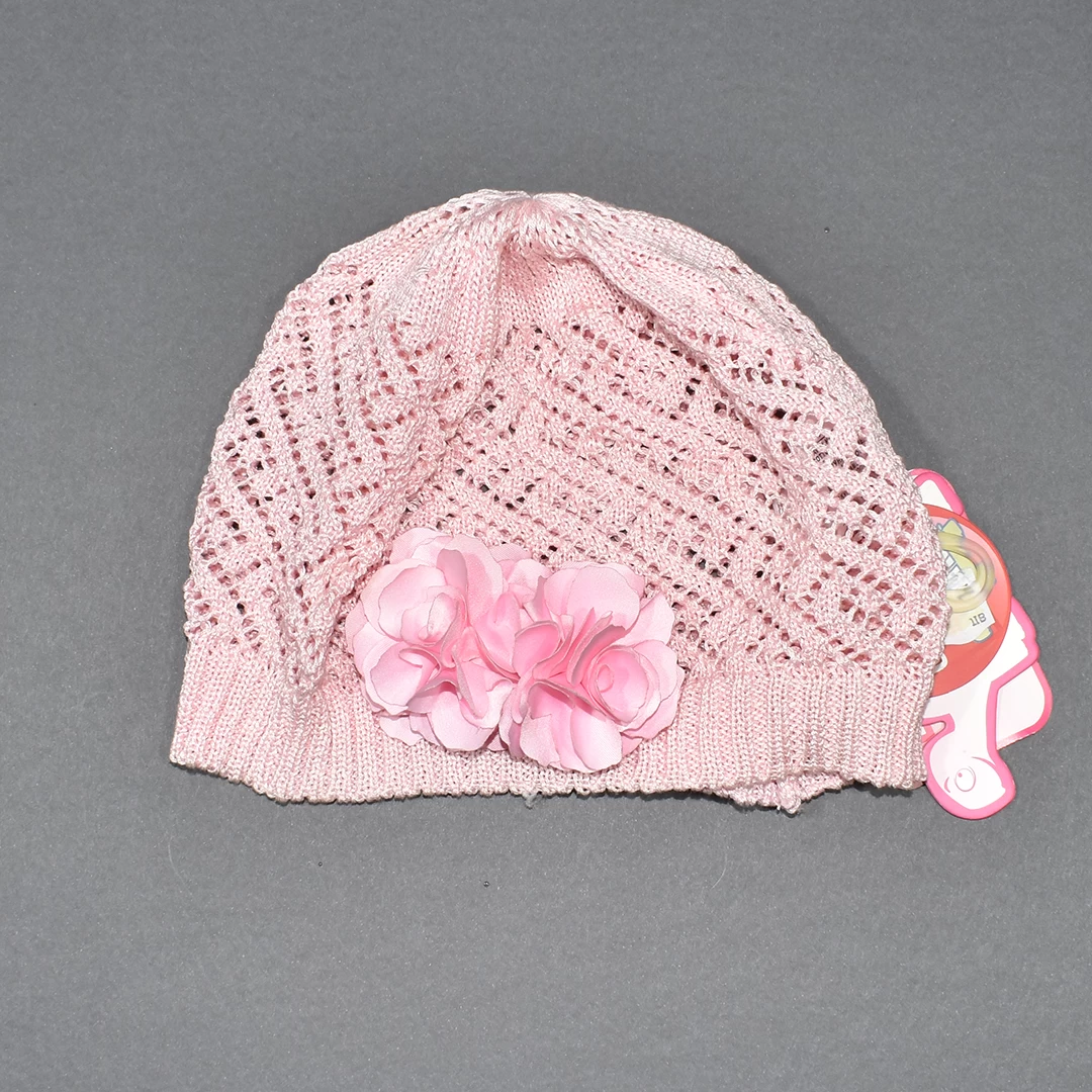 Нежна бебешка шапка за момиче - Розово фино памучно плетиво на дупчици
